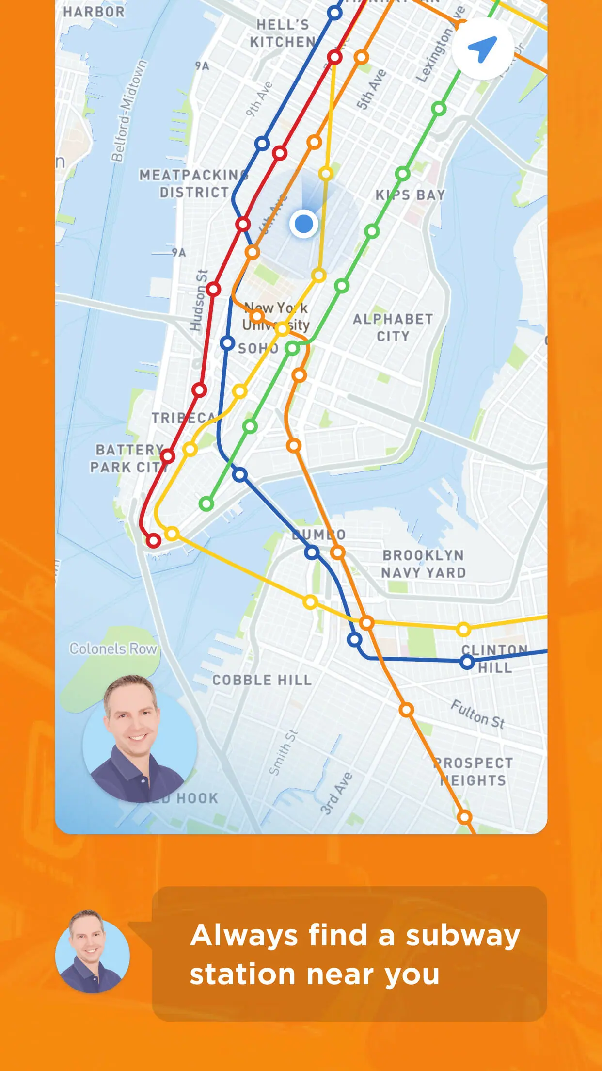 - Your current location on the map, based on built-in GPS, which also works if you don’t have internet! That way, you can never get lost in New York!