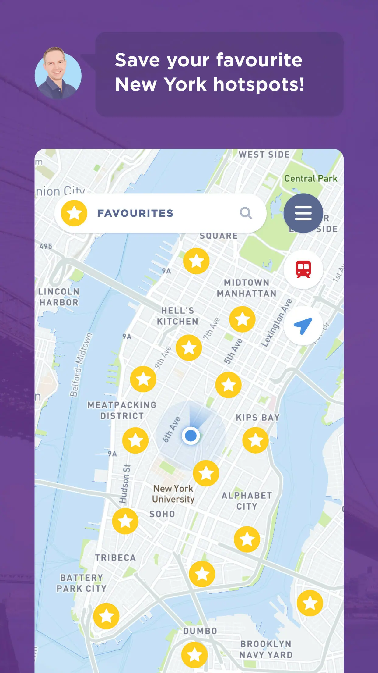 Discover New York with my app as your guide. In the app, you will find: