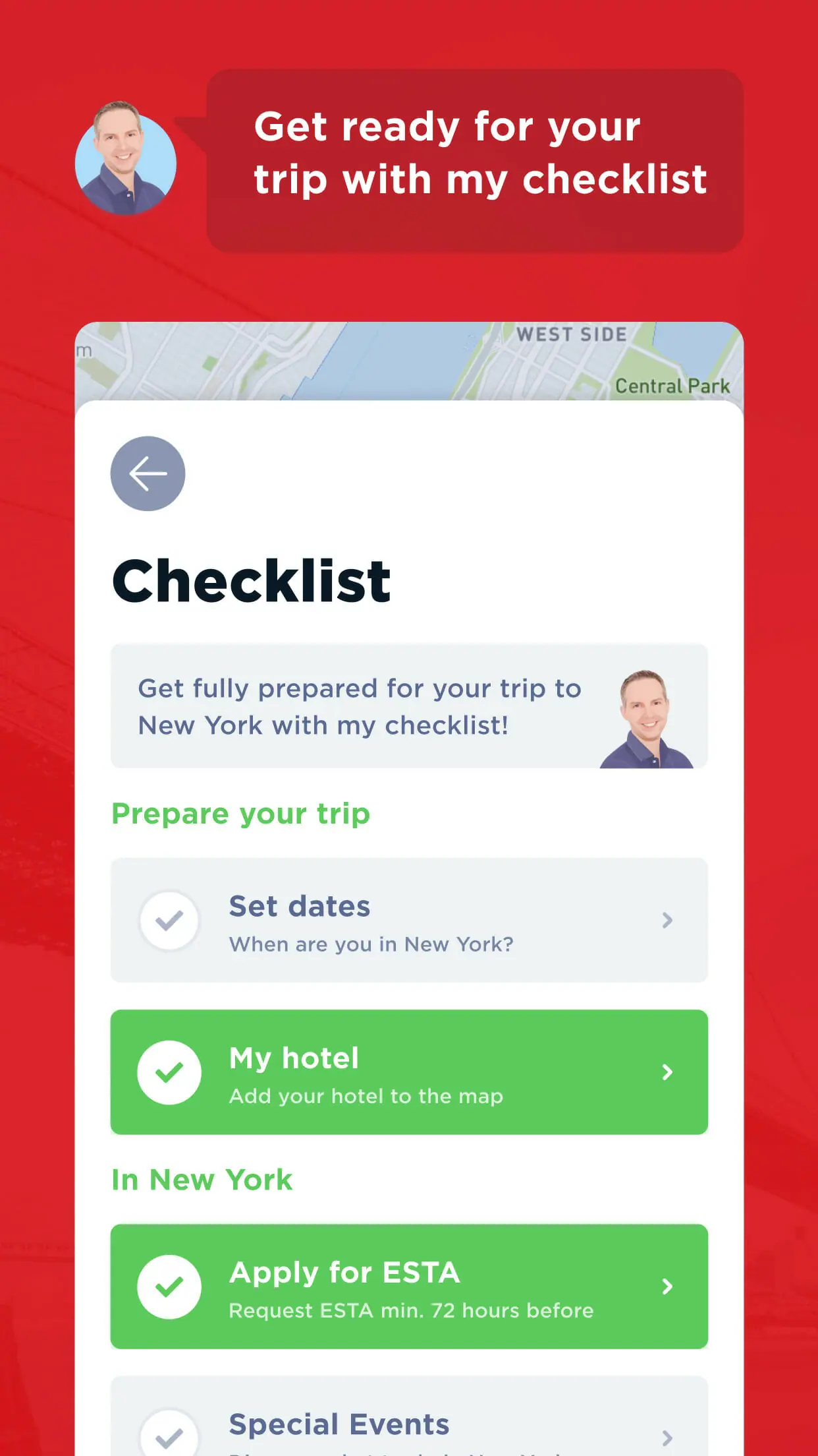 - A checklist so that you don’t forget to arrange anything for your trip to New York.