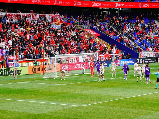 If you are at the arena a half hour before the match starts then you will have enough time to find your seat and get something to eat and drink. You can of course come much earlier than that, there is enough to see and do! Some families travel with campers and have a barbeque before the match starts on the parking lot. DJ plays music, children play their own football matches and there is a stall where you can buy New York Red Bull caps and t-shirts.